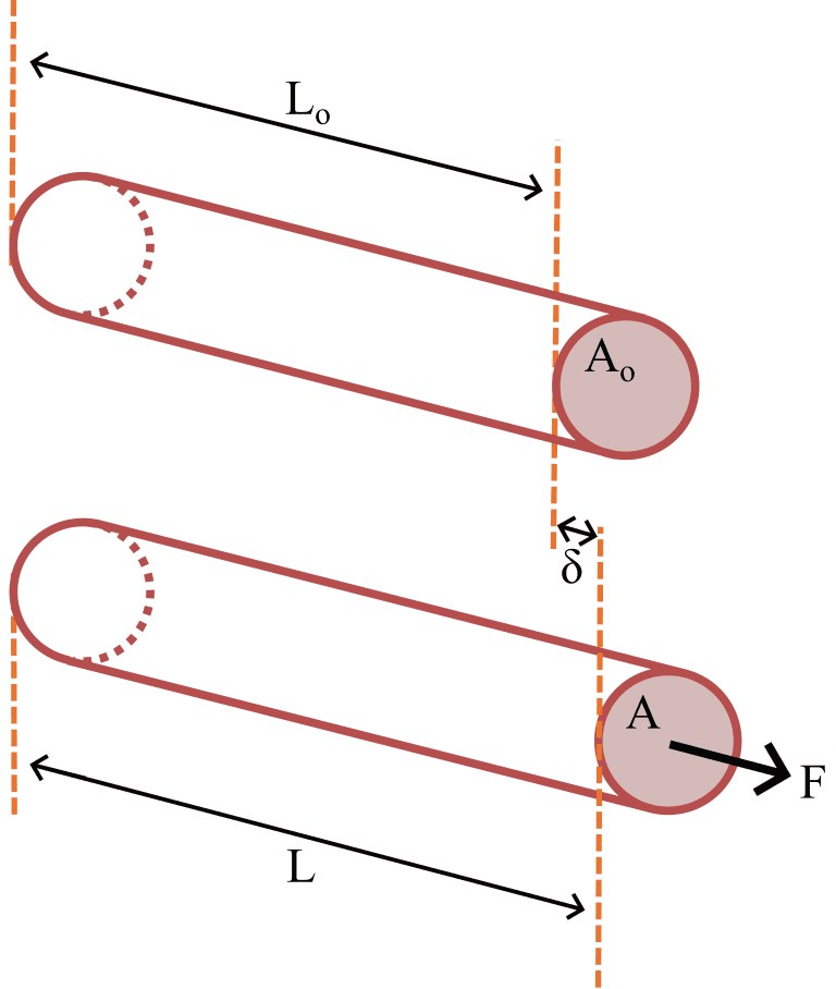 When a load is applied, the rod undergoes deformation, resulting in an elongation as shown in Figure 1. Normal uniaxial strain is defined as the ratio of the change in the rod’s length to its original length under the applied normal load.
